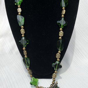 Beautiful colorful enameling on the 2.5 inch Owl with faceted black glass eyes. Owl is articulated to swing when you move! The chain is 24 inches with unique green glass stones and brass beading. Lobster claw. est. 1970s necklace. Gorgeous. See all pictures for details.