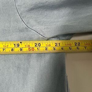 Vintage chambray with whimsical owl details throughout .Cut in a loose, boxy fit with a full button-front closure + long sleeves topped with lacy adjustable cuffs. Trimmed with a lacy pointed collar + double patch pockets at the chest and finished with a rounded hem.