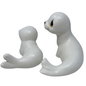 Vintage Oxford Mother & Baby White Seal Pup Ceramic Figurines Set of 2 Mexico