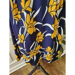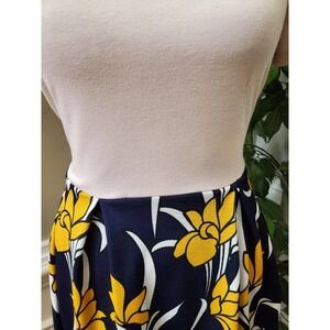 Vintage Oxiuly Blue Yellow Puffy Swing Knee Length Dress W/ Pockets Size M