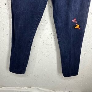 Vintage Ozark Mountain Women’s size 9/10 High Waist Straight Leg Indigo Blue Jeans. They are some patches on jeans ( no holes under patch) and some patch residue on pocket. Besides that normal wear 100% cotton.
