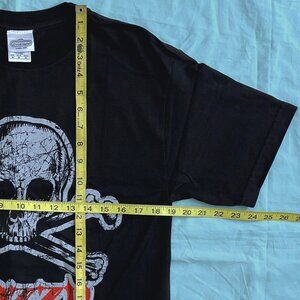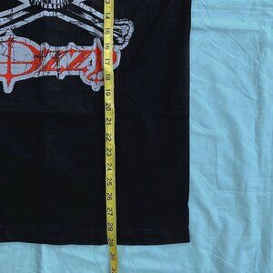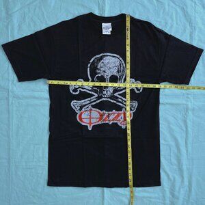 Vintage Ozzy Skull & Crossbone logo front / Bat Icon back. Size Medium measures 19"w x 29"h. The t-shirt has a 1.75" wide hole in lower back ( see detail ). Sold "As Is". Otherwise tee is in good condition.