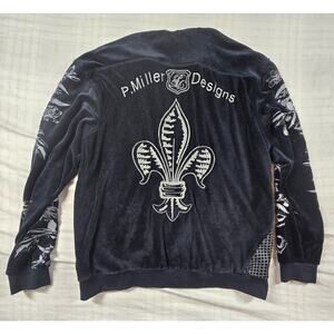 Vintage P. Miller Jacket Mens Velour Track Jacket Y2K Hip Hop Streetwear Blck XL