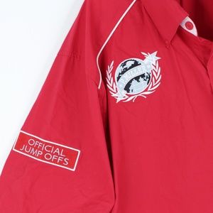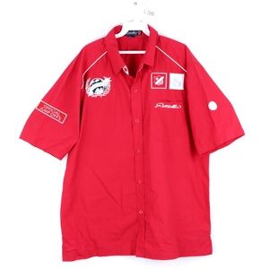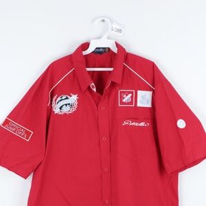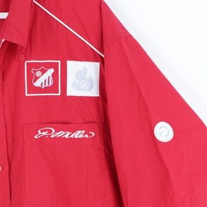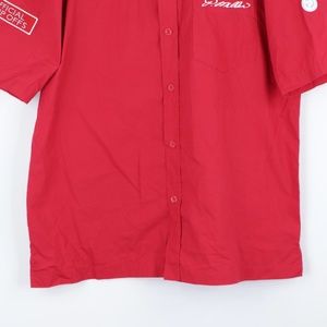 Vintage P Miller Mens Large Streetwear Stitched Spell Out Button Up Shirt Red