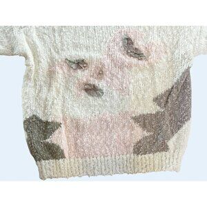 Great vintage sweater by Palm Springs Yacht Club. Circa 80s / 90s. Pullover style. Short sleeves. Cream / Ivory with splashes of pastel colors and floral embellishments allover. Shoulder pads. 100% acrylic. Listed as a size medium based on measurements. Pre-owned and gently worn in really nice vintage condition!