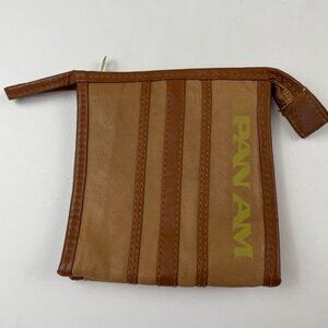 Vintage PAN AM Airlines Amenity Kit Toiletry Travel Bag Zip Brown Leather Pouch