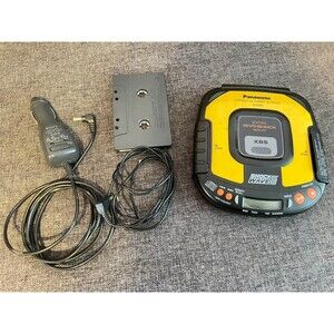 Vintage PANASONIC SHOCK WAVE Portable CD Player Yellow Black SL-SW405 Charger