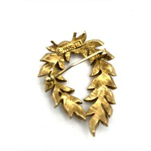 Vintage Signed PANETTA Clear Rhinestones Faux Pearl Goldtone Wreath Swirl Pin Brooch
