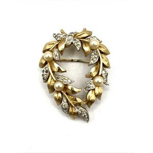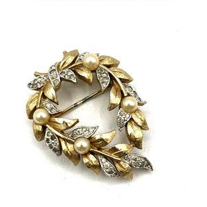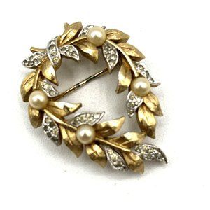 Vintage PANETTA Brooch Rhinestones Faux Pearl Wreath Swirl Pin Brooch