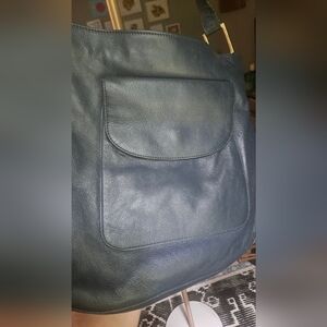 Vintage PAOLA DEL LUNGO 100% Genuine Leather Shoulder Purse Deep Navy.