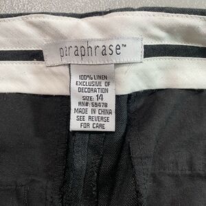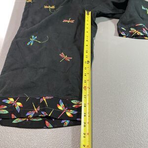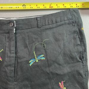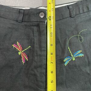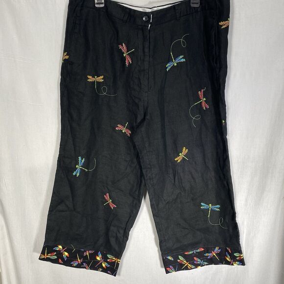 Vintage PARAPHRASE Capri Pants Linen Embroidered Beads Dragonfly Womens 14 Black