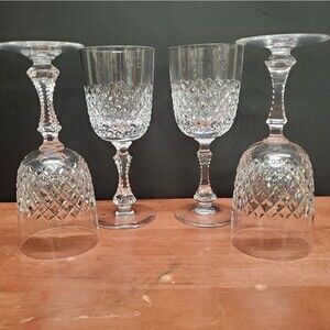 Vintage PARMA by Josair Diamond Crystal Cut Stemware Wine Glasses