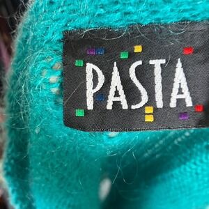 Vintage PASTA Cardigan Sweater Large Mohair Blend Teal Green Floral Knitwear