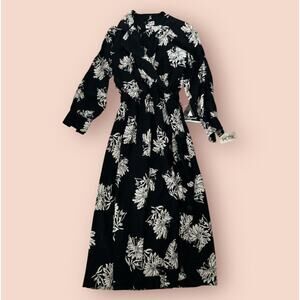 Vintage PAT ARGENTI Floral Black Long Sleeve Dress New with Tag Hawaiian Aloha