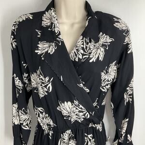 The Vintage PAT ARGENTI Floral Black Long Sleeve Dress is a stylish and unique piece from the 1990s. Made of rayon, this shirt dress features a classic black color with a touch of Hawaiian Aloha flair. With its long sleeves and casual occasion, it is perfect for everyday wear or special evening events. The dress is in size 10 and was manufactured in Hong Kong, giving it a distinct vintage appeal.