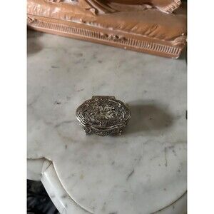 Vintage PAT JAPAN oval MINI box on legs, cherubs, perfume Neija Moulin Rouge