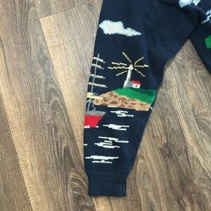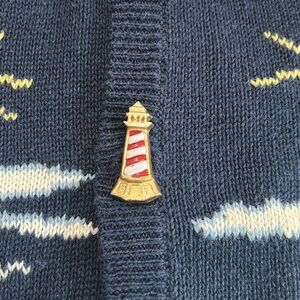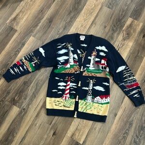 Vintage PBJ Sport Navy Blue Lighthouse Novelty Cardigan Size Large