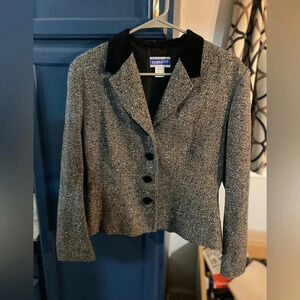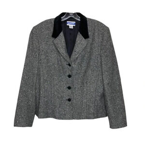 Vintage PENDLETON Black & Gray Wool Tweed Blazer Velvet Collar & Buttons