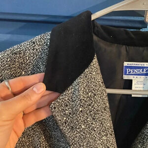 Vintage PENDLETON Black & Gray Wool Tweed Blazer Velvet Collar & Buttons 10P
