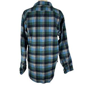 Vintage Pendleton 100% Virgin Wool Plaid Button-Up Shirt | Blue, Green & Gray | Size Medium | Made in USA