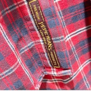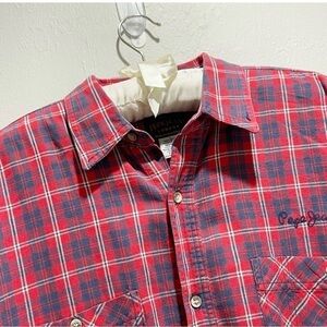 Vintage PEPE JEANS Men’s Red Plaid Flannel Button Down Shirt Shacket USA Size L