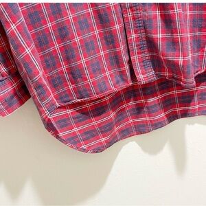Vintage PEPE JEANS Men’s Red Plaid Flannel Button Down Shirt Shacket USA Size Large. Very good pre-owned vintage condition. Gentle signs of wear. All measurements are approximate.