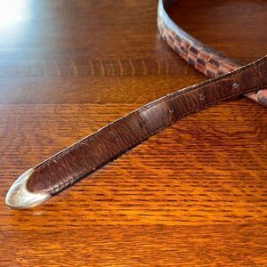 Woven genuine soft leather golf belt. Men’s size 42. Great vintage condition. Pre loved with normal wear to leather.