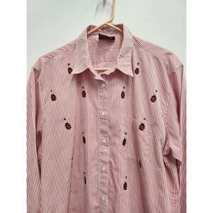 Vintage P.G.B. Womens Ladybug Shirt XL Red Striped Long Sleeve Embroidered Artsy