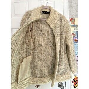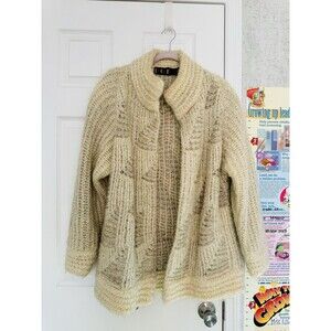 Vintage P.G.E. Women’s Mohair Wool Ivory Cream Tan Cardigan Medium Knitted