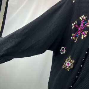 Vintage P’Galli Designs Black Embellished Cardigan Sweater Size Medium 80s 90s