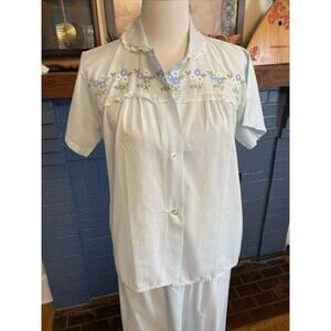Vintage PHILMAID Two Piece PAJAMA SET SIZE 36 Embroidered M/ L Daisy Women’s
