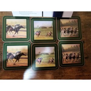 Vintage PIMPERNEL Coasters Horse Racing England Set of 6 Square 4". These are in gently used good condition. There are a few marks as noted in above pictures. These come in original box.