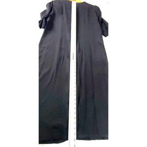 Vintage P.J. Klein Women's Size 16W Black Dress Large Button Front Short Sleeve. Very good condition. 44" Length, 43" Bust. Shoulder pads are thick, approximately 1/2" thickness. Made in USA.