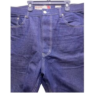 Keywords: PJ Mark jeans, men's denim jeans, dark wash jeans, relaxed fit jeans, size 42x32, white stitch jeans, casual jeans, men's fashion, denim pants, blue jeans, designer jeans, comfortable jeans, everyday jeans