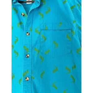 Vintage PLUGG Mens Lizard Gecko Print Casual Button Down/Up Shirt Size Large