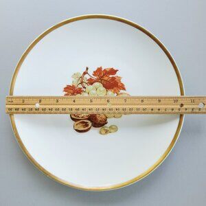 Vintage PM Jaeger & Co. Harvest Dinner Plate, Grapes & Walnuts, Heavy Gold Trim