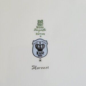This exquisite vintage dinner plate from PM Jaeger & Co, circa 1950-60, features a fruit and nut design with heavy gold trim. Made in Bavaria, Germany, and distributed by E&R from Philadelphia USA, it’s a beautiful addition to any collection.
