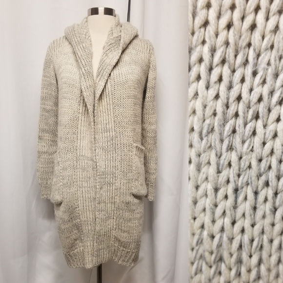 Vintage POL Chunky Knit Long Duster Gray Open Cardigan Sweater Woman's M
