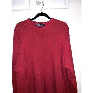 Vintage POLO RALPH LAUREN Mens Pullover Sweater Red Knit Crewneck Cotton Pony XL