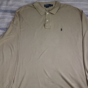 Excellent condition light tan cotton long sleeve polo shirt by POLO by Ralph Lauren. No stains, spots, tears, holes, or discoloration. Smoke and pet free as always!