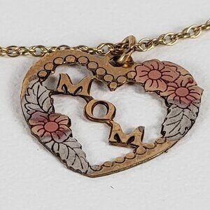Vintage PPC 14K GF Yellow Gold "MOM" Heart Necklace 18 In Spring Ring Clasp