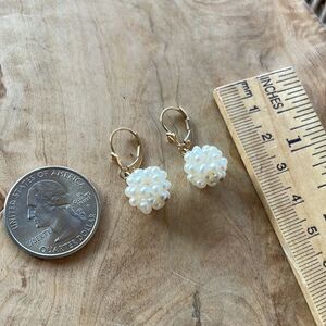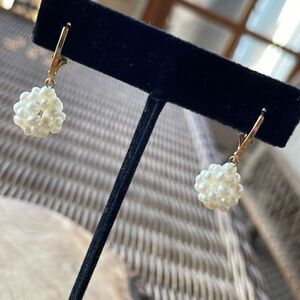 Stunning, Vintage PPC (Princess Pride Creations) Signed 14K Gold Pearl Cluster Dangle Pierced Earrings; 3.1 digital Grams total weight (gram weight includes both earrings). Lever-Back Pierced style setting ; 1" Drop (cluster ball diameter of .5"). Perfect for a bride to wear!