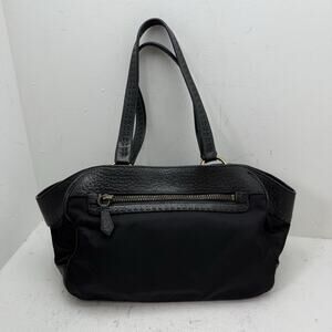 Vintage PRADA Black Tessuto Nylon Vitello Leather Trim Shoulder Tote Bag Y2K