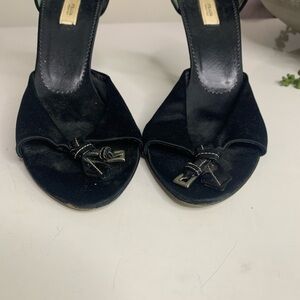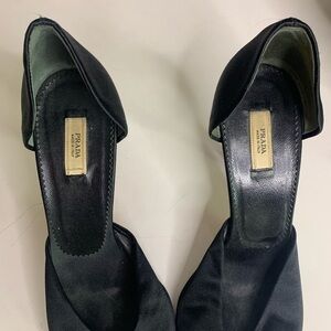 Vintage PRADA Italy black satin belt knot open toe Stiletto heels shoe 6.5 size