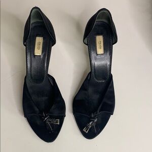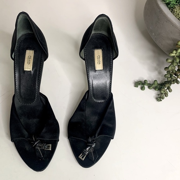 Vintage PRADA Italy black satin belt knot open toe Stiletto heels shoe 6.5 size