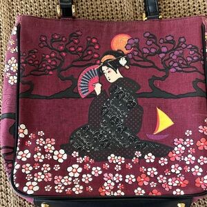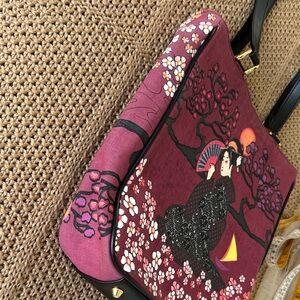 This artistic Geisha girl shoulder bag showcases exquisite embroidery with a vibrant multicolor palette. Perfect for adding a unique flair to your ensemble. Only beaded on one side. Small pocket inside. New without tag