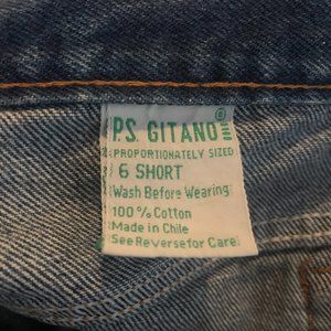 Vintage P.S Gitano high rise denim with ankle length, four pocket, buttons on the ankles, made from 100% cotton making it a very sturdy denim. Tag size reads 6 short but it fits like a modern size XS so follow the measurements for better accuracy.