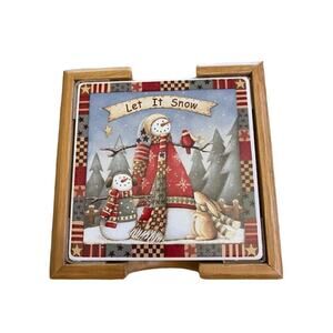 Vintage PSI "Let It Snow" Tile Coasters w/Wooden Holder Set of 4 Excellent Cond
