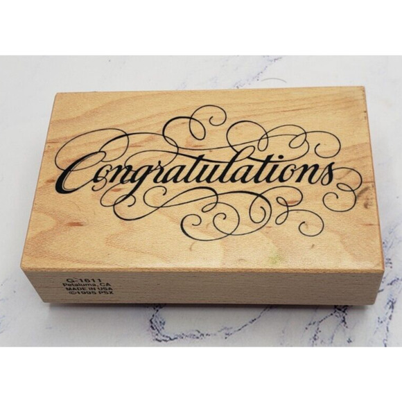 Vintage PSX Rubber Stamp Fancy Congratulations Wood Mounted Rubber Stamp
