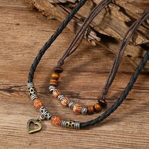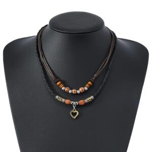 This Vintage PU Leather Beaded Heart Necklace combines rustic charm with a modern boho flair. Crafted with earth-tone beads, the necklace exudes warmth and natural beauty, making it the perfect accessory for any occasion. A delicate heart charm adds a sweet, sentimental touch, while the soft PU leather cord ensures a comfortable fit. Whether you're layering it with other pieces or wearing it as a standout accessory, this necklace brings a timeless, earthy elegance to your look. Ideal for adding a personal, heartfelt touch to both casual and dressed-up styles.